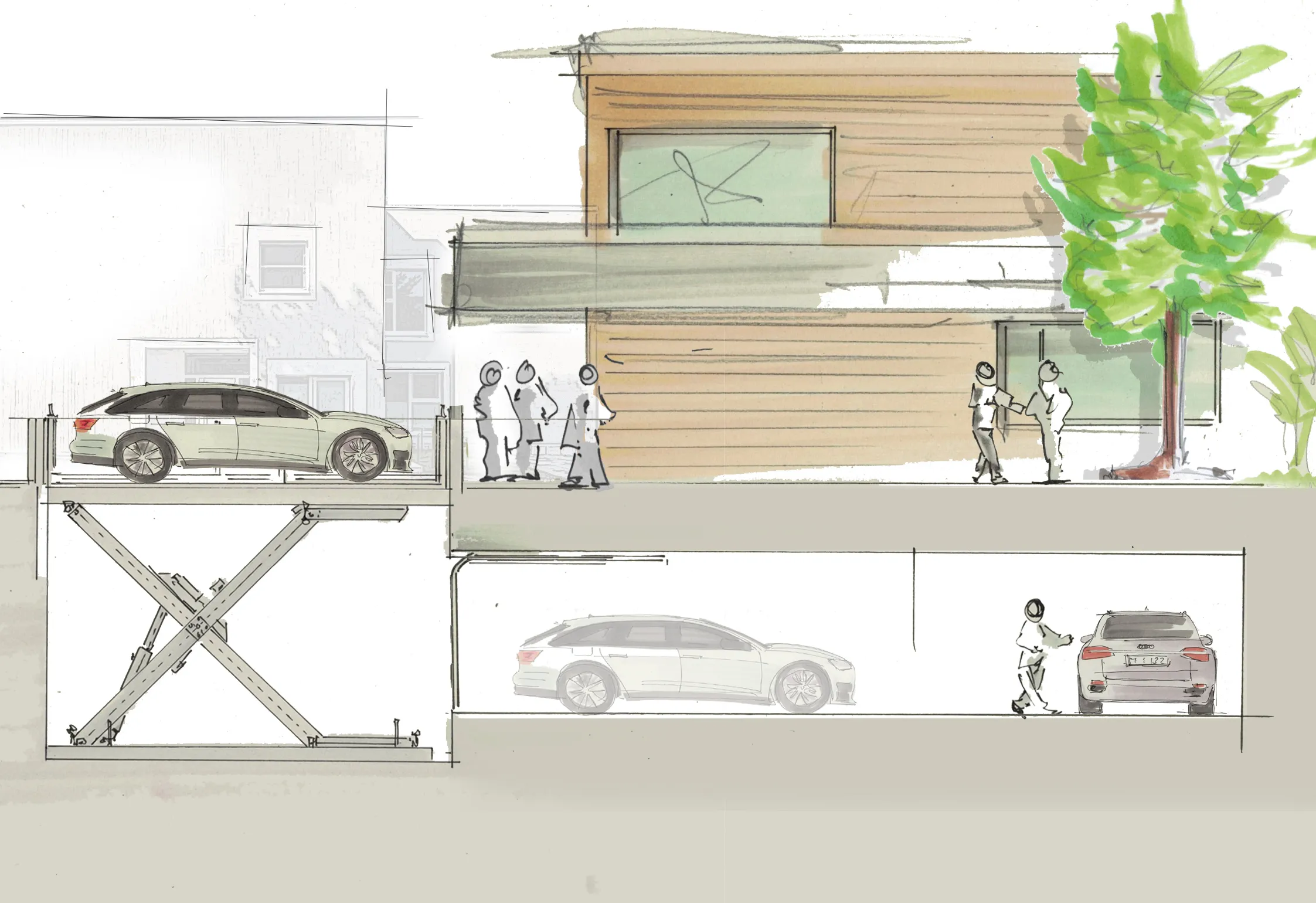 Wir entwickeln und liefern hochwertige PKW-Aufzüge und Transportsysteme auf Basis individueller Kundenanforderungen und -bedürfnisse. Von der Planung über die Herstellung bis zur schlüsselfertigen Montage und Inbetriebnahme bieten wir Qualität Made in Germany. Unsere Lösungen überzeugen durch Betriebssicherheit, Zuverlässigkeit und wartungsarmen Betrieb – ideal für den Einsatz im Innen- und Außenbereich. Ob als versenkbarer PKW-Stellplatz oder platzsparender Zugang zu einer Tiefgarage: unsere Systeme sind besonders geeignet für Privathäuser, Villen und Wohnanlagen mit mehreren Wohneinheiten. Vertrauen Sie auf bewährte Technik sowie Planung und betriebsfertige Umsetzung aus einer Hand, die Sicherheit, Funktionalität und Design nahtlos verbindet.